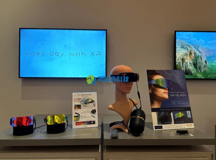 除了索尼,夏普和佳能兩大日企也爭相秀起了“肌肉”。佳能在CES2023上展示了其首款MR頭顯。該頭顯為分體式PC VR,需要連接電腦等計算單元使用,該MR設備采用Pancake光學,頭環的顯示部分可上掀,整體外觀非常輕薄。在MR頭顯正前方,采用了4顆攝像頭來實現Slam定位以及VST(全彩透視)。夏普展出了一款可連接智能手機的VR頭顯原型,該設備采用分體式設計,重量僅有175g,在顯示方面,產品采用了Pancake光學方案,屏幕為分辨率單眼2K、刷新率120Hz的LCD屏幕。夏普稱,產品配備液晶變焦鏡頭,可通過改變聚合物鏡頭的厚度實現圖像的快速聚焦,即使聚焦的位置移動,視角也保持不變,可有效降低暈動癥的發生。